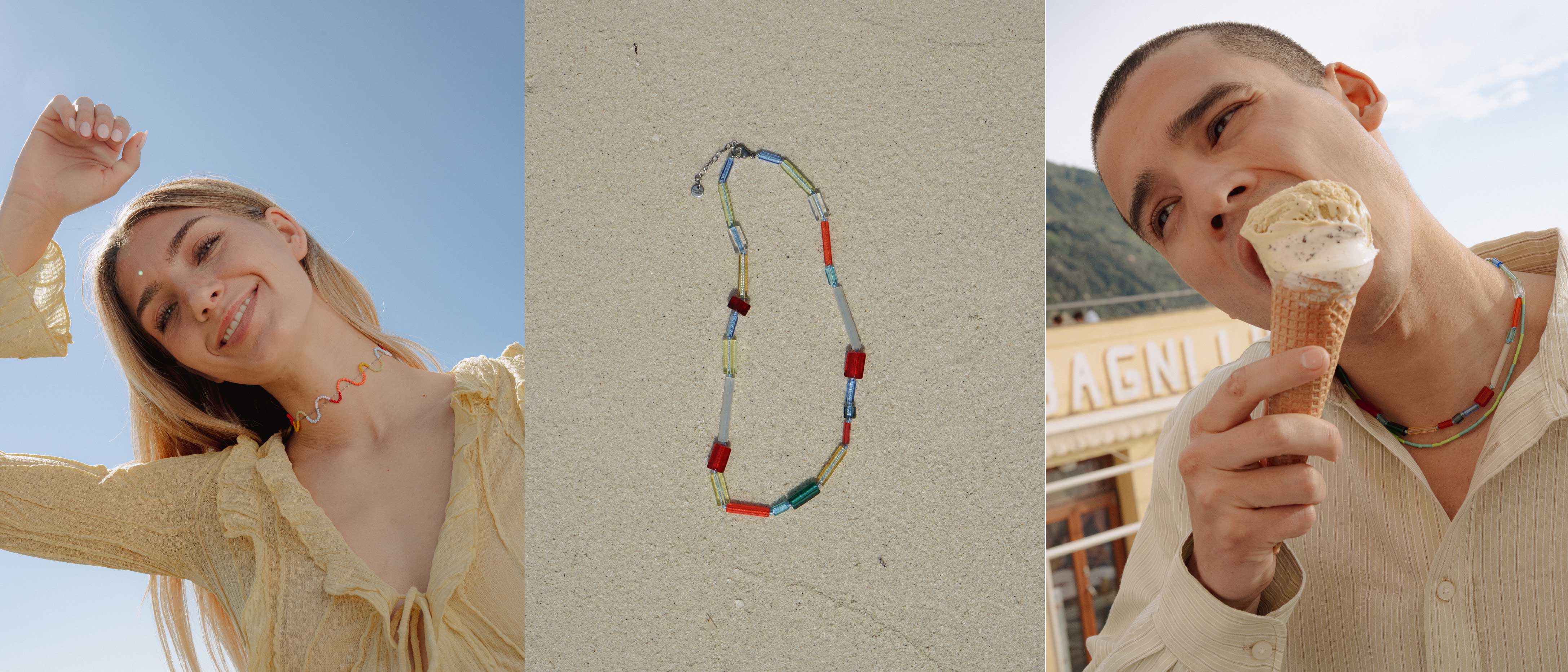 Collanine Colorate è uno spazio dove i gesti più semplici e la creatività prendono forma: ogni pezzo viene realizzato a mano in Italia con l’obiettivo di portare colore e spensieratezza nella vita di tutti i giorni.